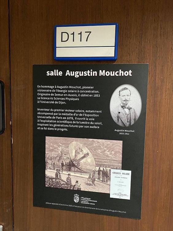 A quelques semaines de la fin du bicentenaire de la naissance d'Augustin Mouchot, il est encore temps (en outre d'offrir autour de soi son témoignage inédit pour noël !) de se réjouir de son entrée à l'Université Bourgogne-Europe... La première !